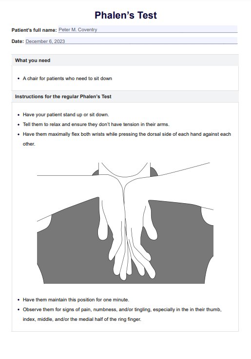 The Phalen's Test was developed by George S. Phalen, an American orthopedic surgeon and professor, in the 1950s. He initially used the assessment to diagnose carpal tunnel syndrome in patients, but it has since been adapted for other nerve-related conditions.