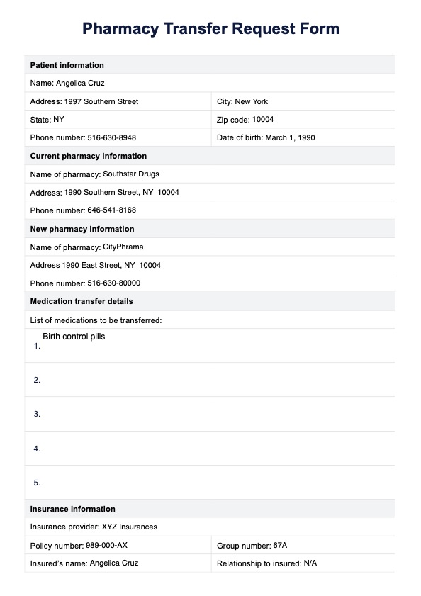 Pharmacy Transfer Request Form Template