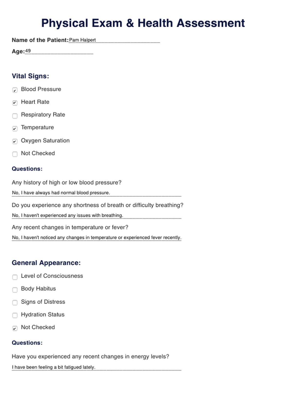 Physical Exam & Health Assessment Template