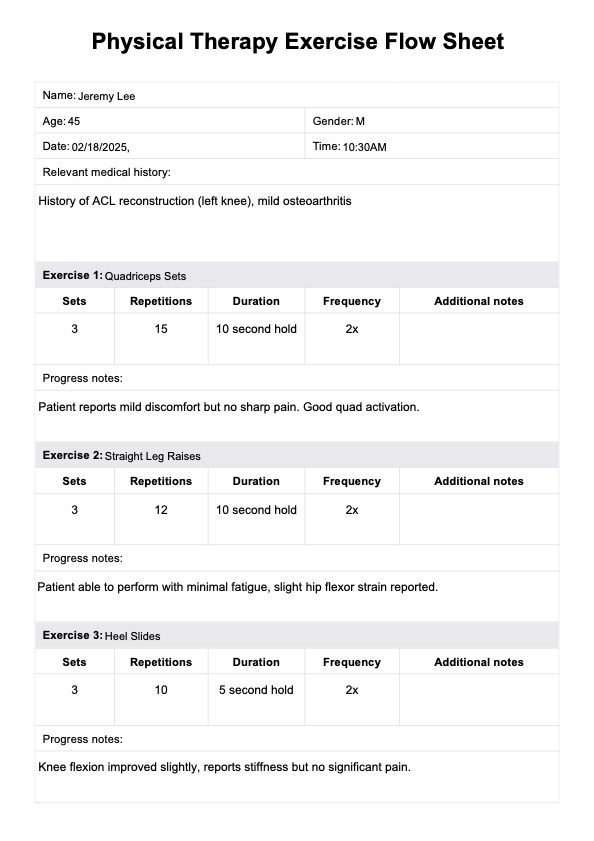 Physical Therapy Exercise Flow Sheet PDF Template