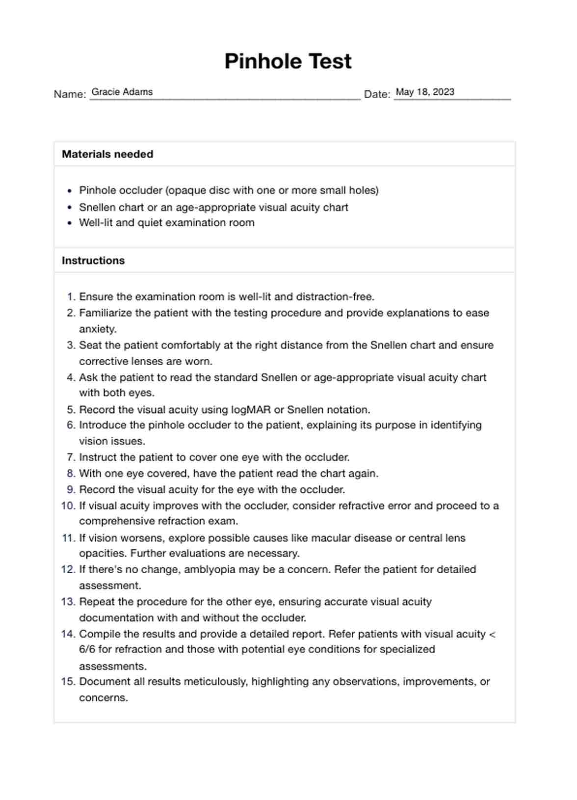 Learn how to perform the Pinhole Test. Get a free PDF template and example for easy clinical documentation.