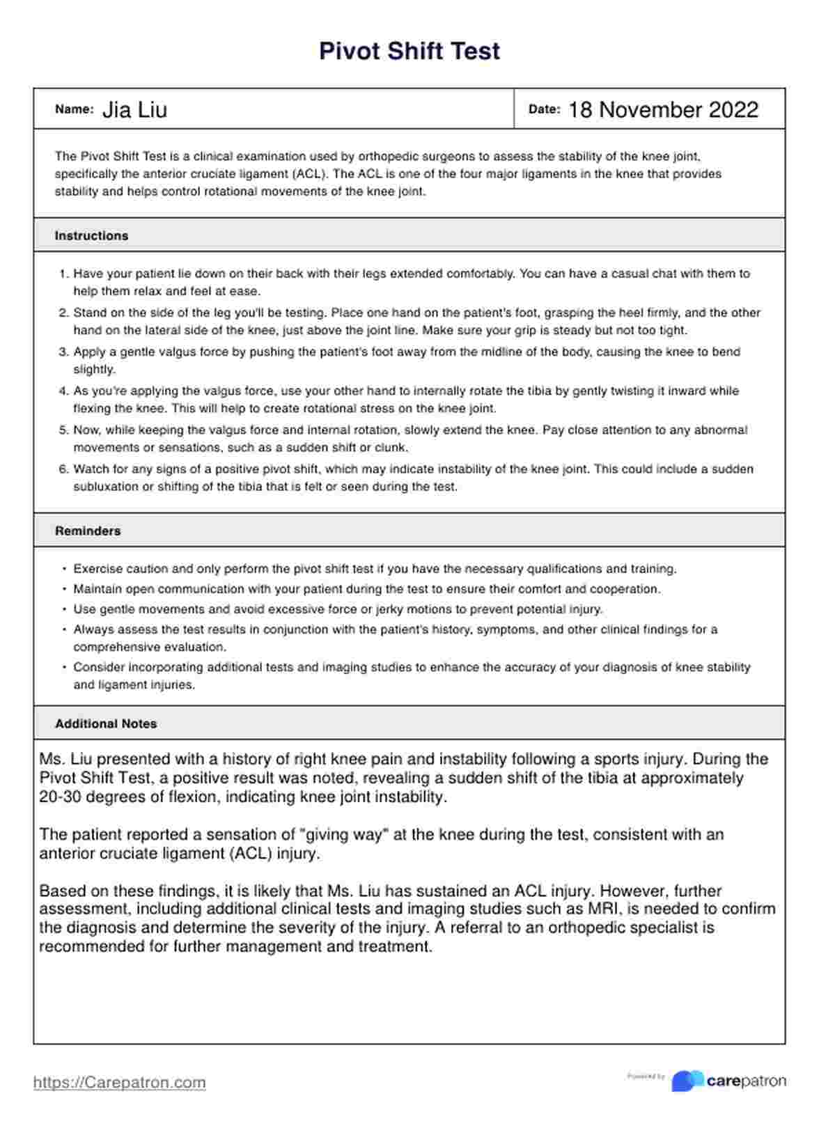 Understand the Pivot Shift Test and its role in diagnosing ACL injuries. Download a free PDF template and example to learn more about this assessment.