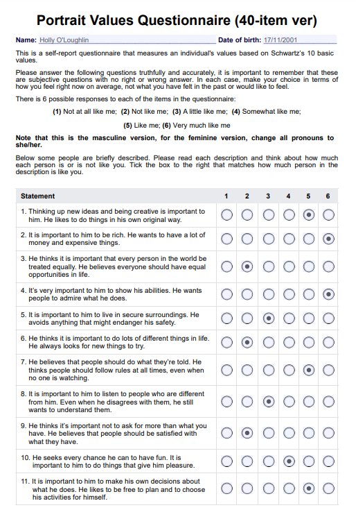 Click here to learn more about the Portrait Values Questionnaire and how to use it.