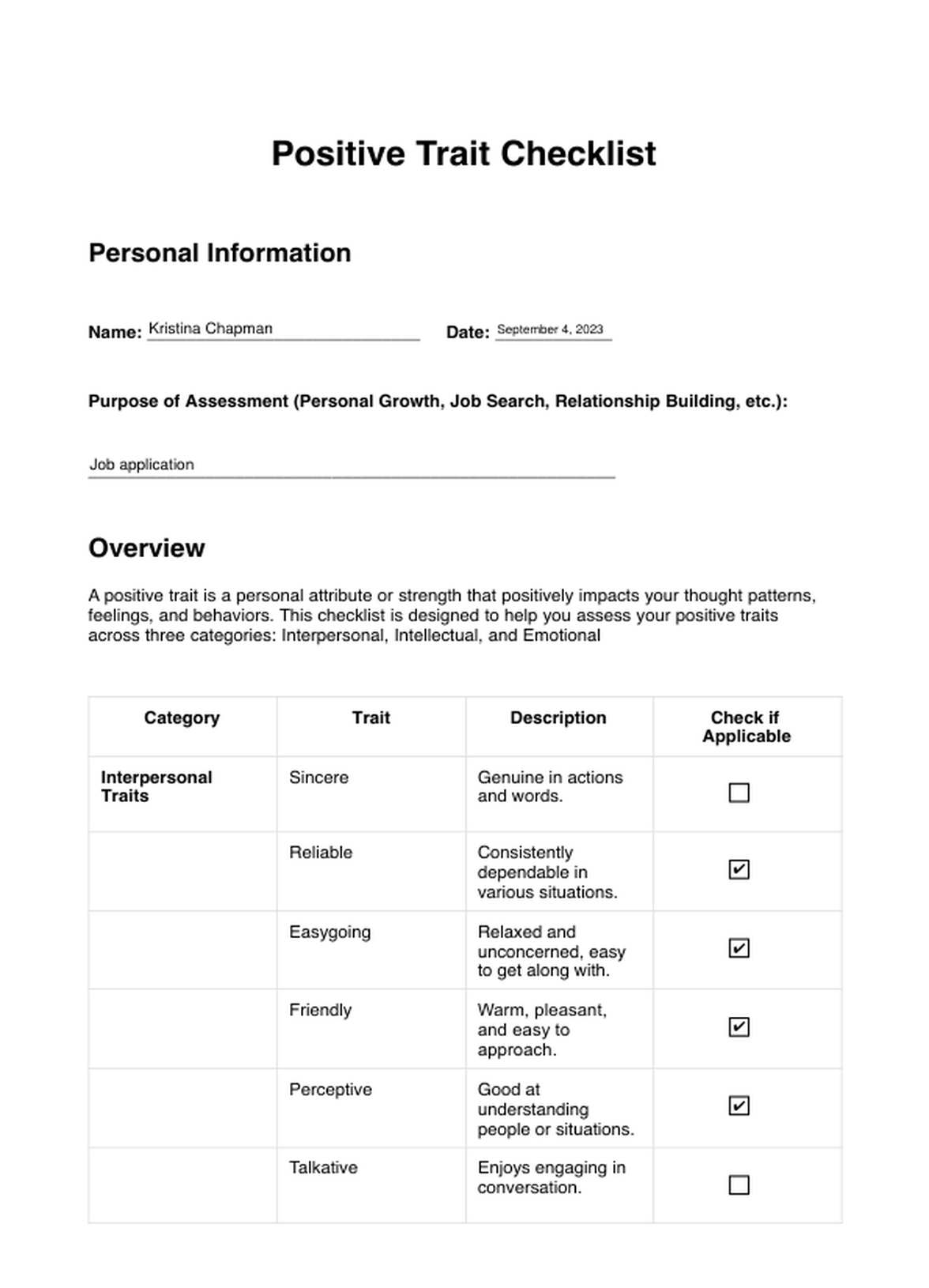 Use our Positive Attributes List template to help your clients assess their own personal and professional growth. Try our free template now!