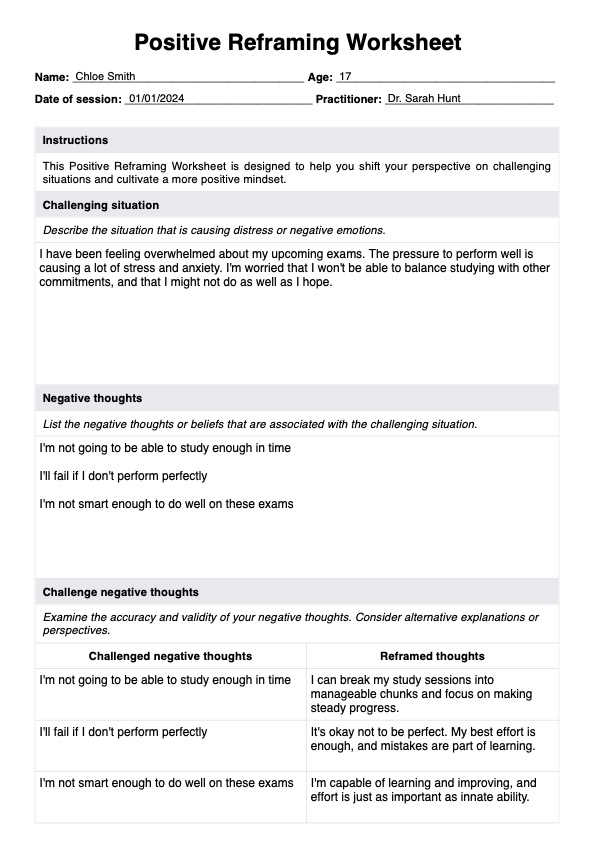 Transform negativity within clients into resilience with our Positive Reframing Worksheet. Support the development of a more healthy and balanced perspective.