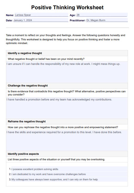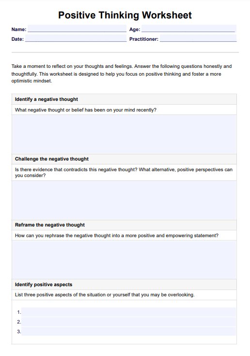 Positive Thinking Worksheets are used at various times, including therapy sessions to address specific concerns, as part of daily routines for personal development, or during challenging periods to promote a positive mindset.