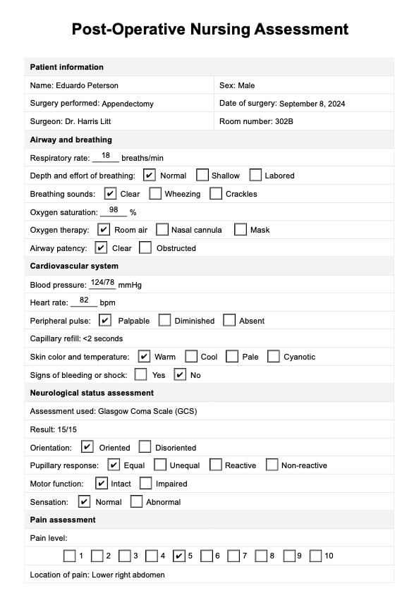 Optimize recovery through this efficient post-operative nursing assessment for comprehensive patient care and better health outcomes.