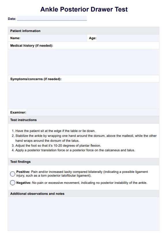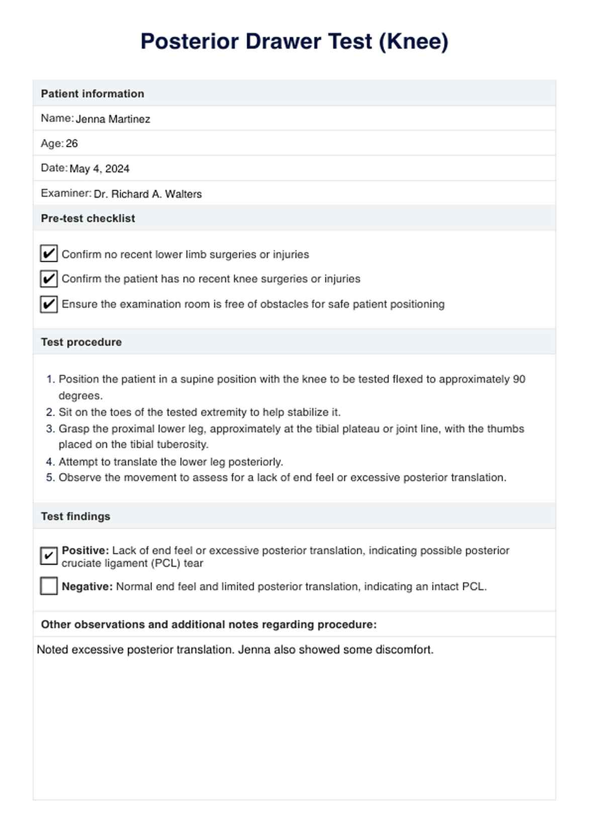 Use our Posterior Drawer Test (Knee) template to assess PCL injuries accurately and enhance clinical documentation. Learn more about PCL injuries here.