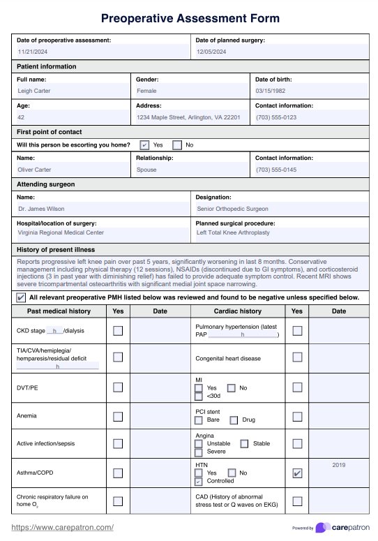 Standardize preoperative evaluation and procedures with our Preoperative Assessment Form PDF.