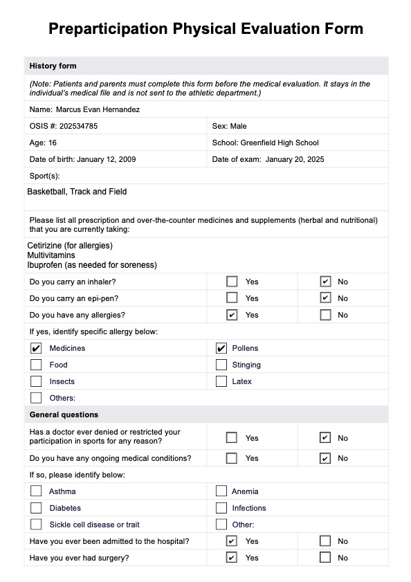 Download our Preparticipation Physical Evaluation Form template to streamline sports health assessments, ensuring safety and readiness for young athletes.