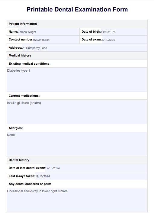 Download our free Printable Dental Examination Form to easily track dental check-ups and patient information.
