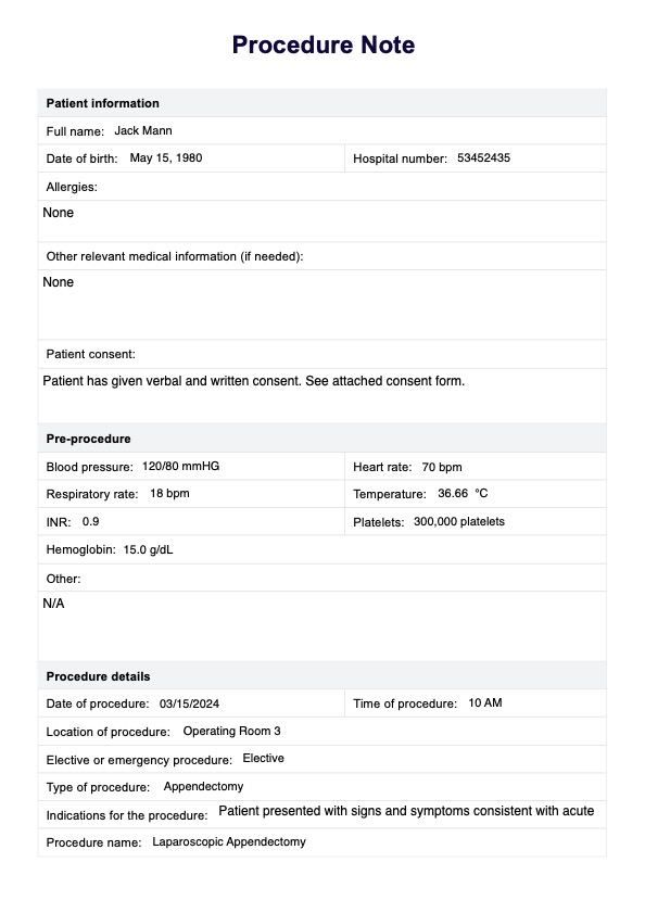 Ensure patient identity, consent, anesthesia, vital signs, and complications are documented. Download our accessible Procedure Note Template today!