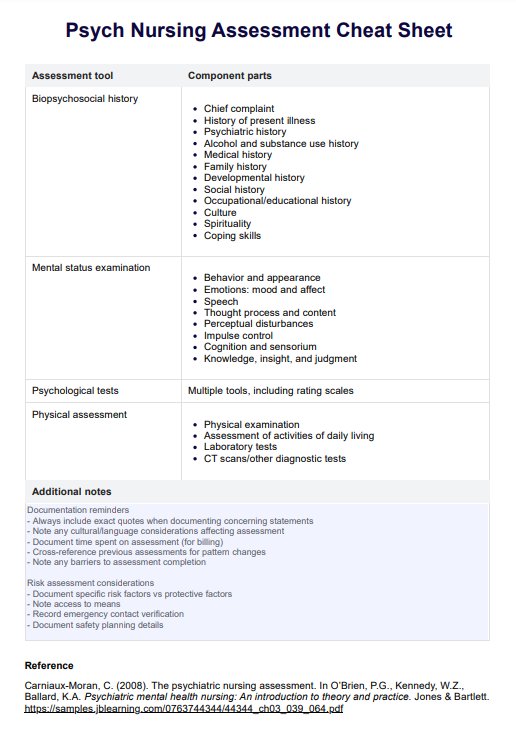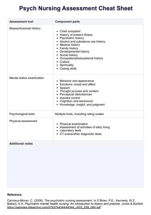 Access a Psych Nursing Assessment Cheat Sheet to efficiently evaluate mental health patients, streamlining the process for effective and informed care.