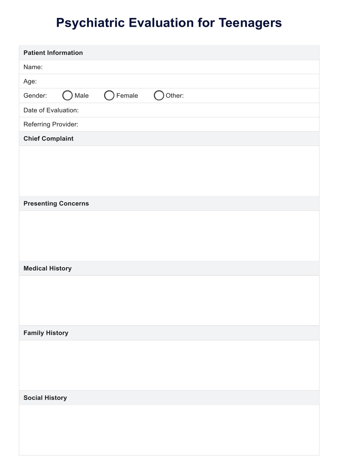 Psychiatric Evaluation Template