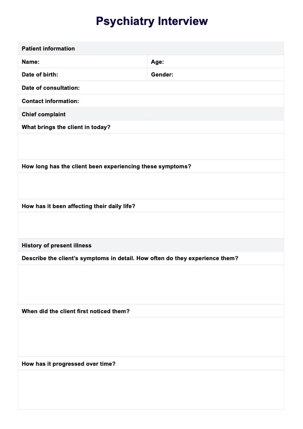 Our Psychiatry Interview Template provides a structured approach to conducting a comprehensive psychiatric evaluation. Download a free PDF now.