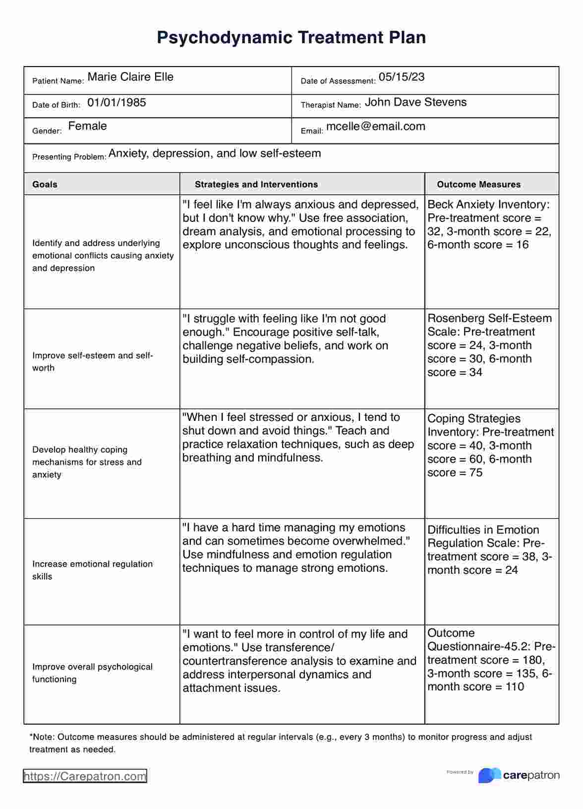 Psychodynamic Treatment Plan Template