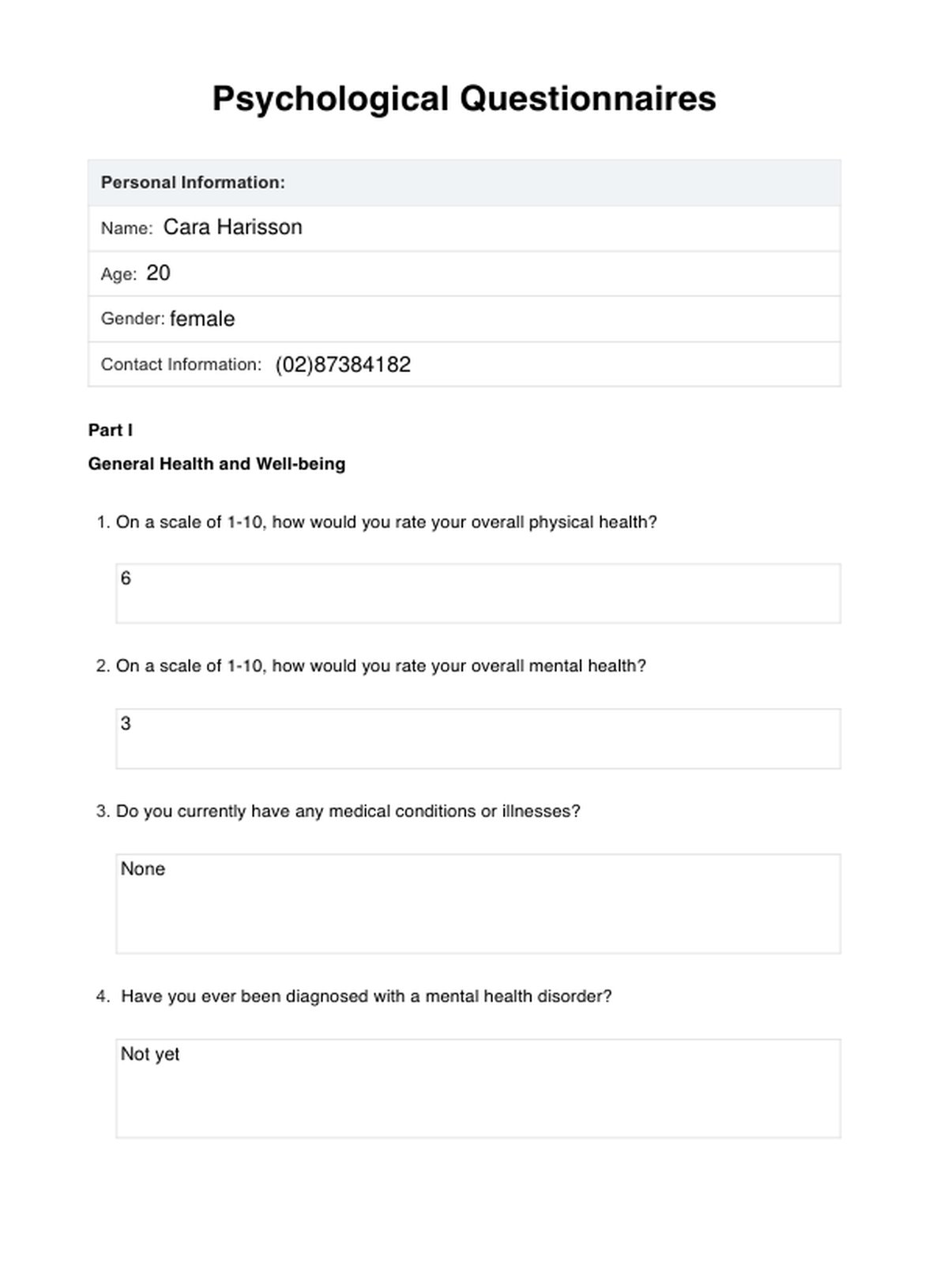 Explore various psychological assessments to gain insights about your patient. Access our free psychological questionnaires and examples template.
