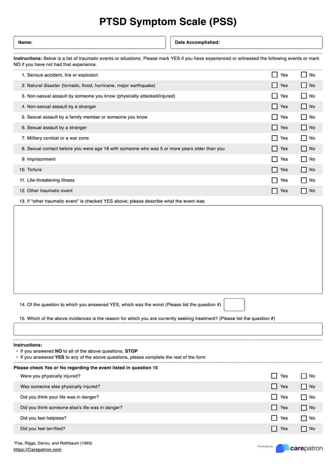 If you have a patient suffering from PTSD and you’re looking to treat it, use this nifty PTSD Symptom Scale (PSS) to gauge the symptoms and the severity of their PTSD.