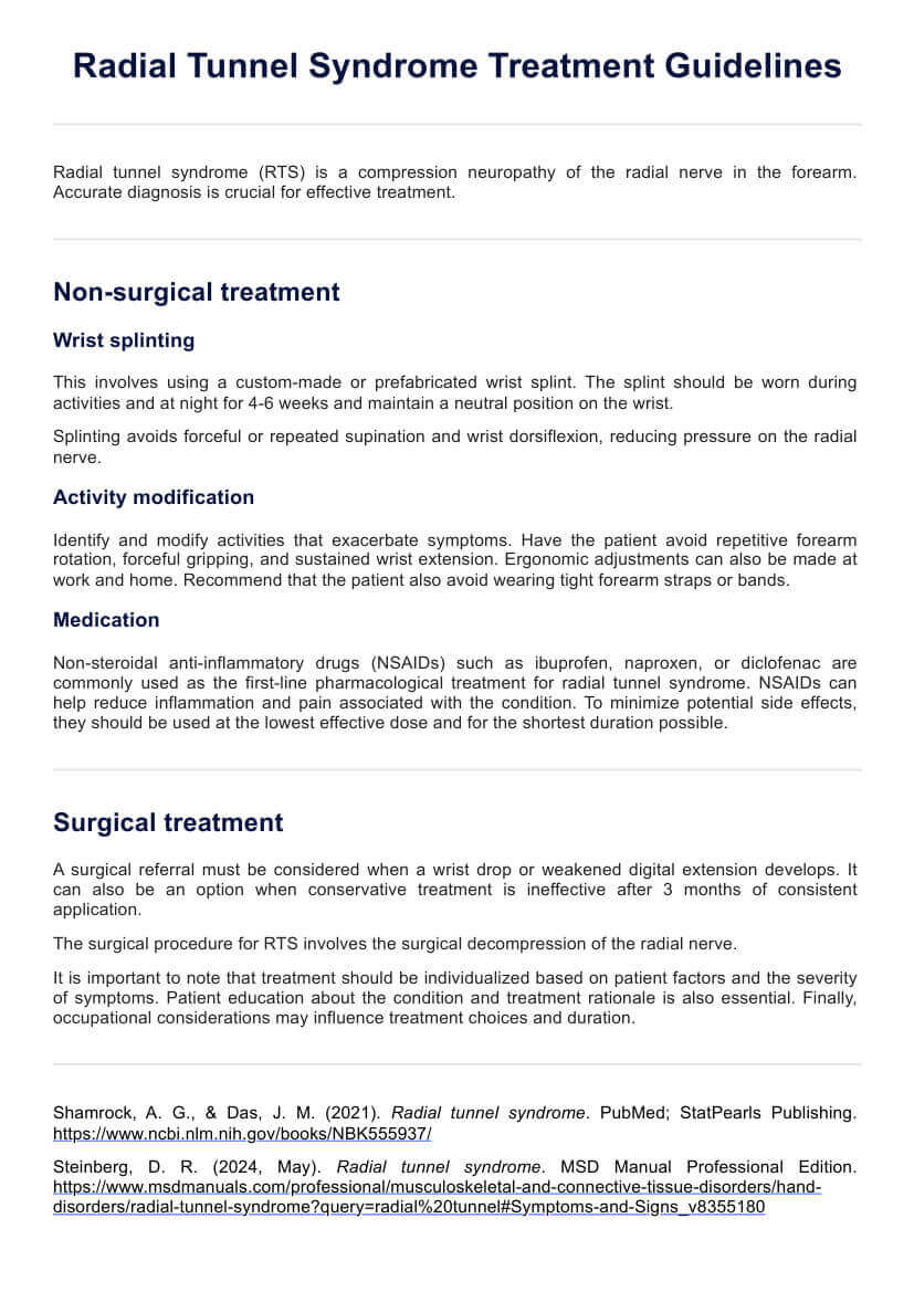 Radial Tunnel Syndrome Treatment Guidelines Template