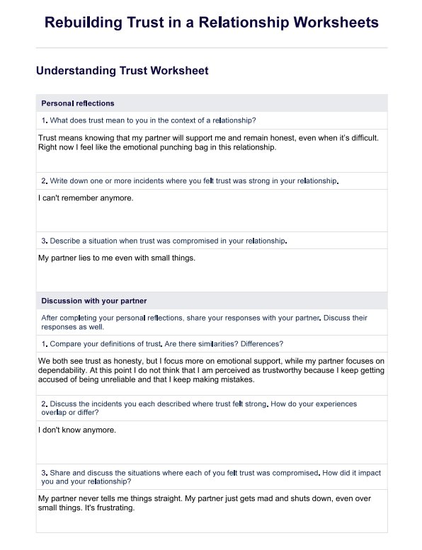 Rebuilding Trust in a Relationship Worksheets PDF Template