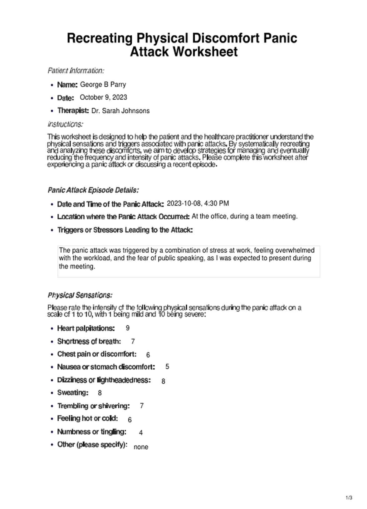 The worksheet can help recreate physical discomfort in a controlled environment, a crucial component of exposure therapy. By documenting sensations and triggers, it provides a basis for designing exposure exercises.