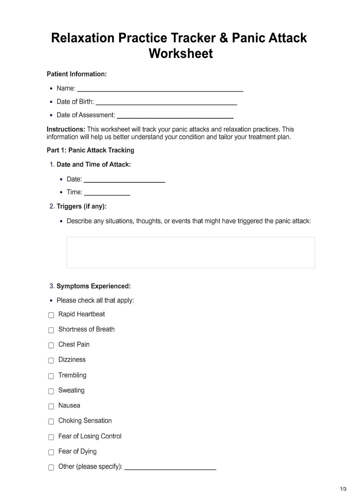 Efficiently manage anxiety with our Panic Attack Worksheet & Relaxation Practice Tracker—tailored tools for healthcare-led relaxation and calm.