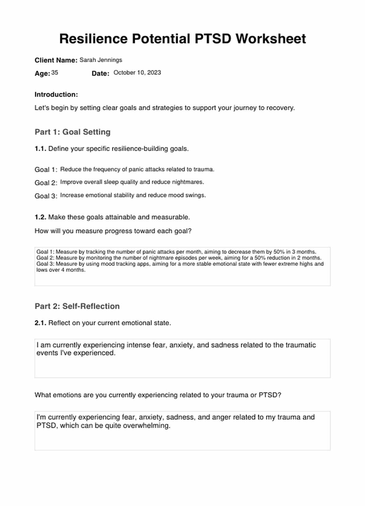 A comprehensive Resilience Potential PTSD Worksheet designed to aid practitioners in helping clients with PTSD. Download the free PDF now!