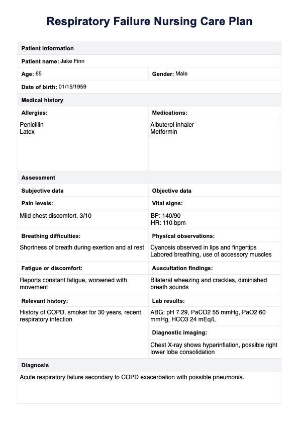 Elevate your patient care skills and learn to create effective care for respiratory failure with Carepatron's Respiratory Failure Nursing Care Plan template.