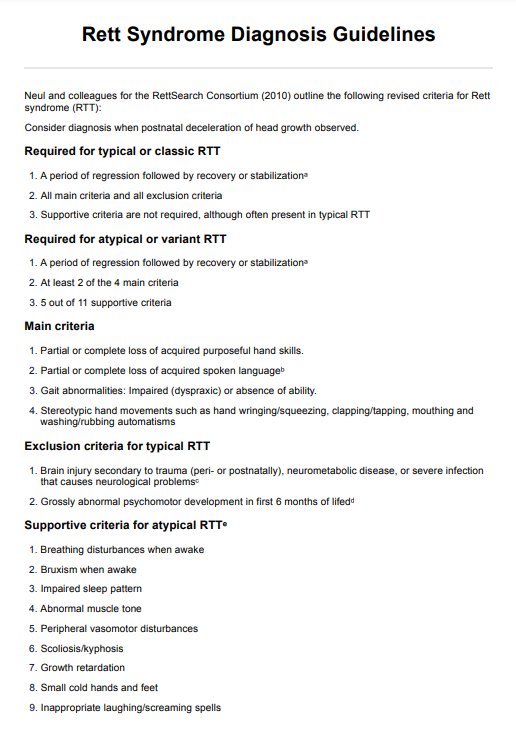 Rett Syndrome Diagnosis Guidelines Template