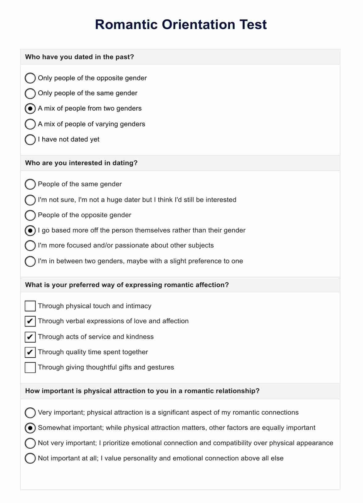 Learn about various examples of romantic orientations and how the Romantic Orientation Test works. Download a free PDF example and explore the benefits.