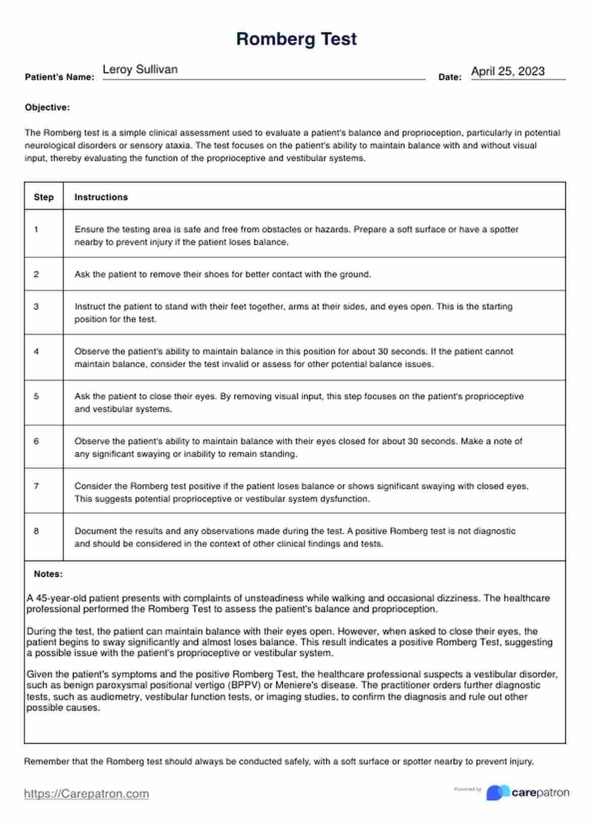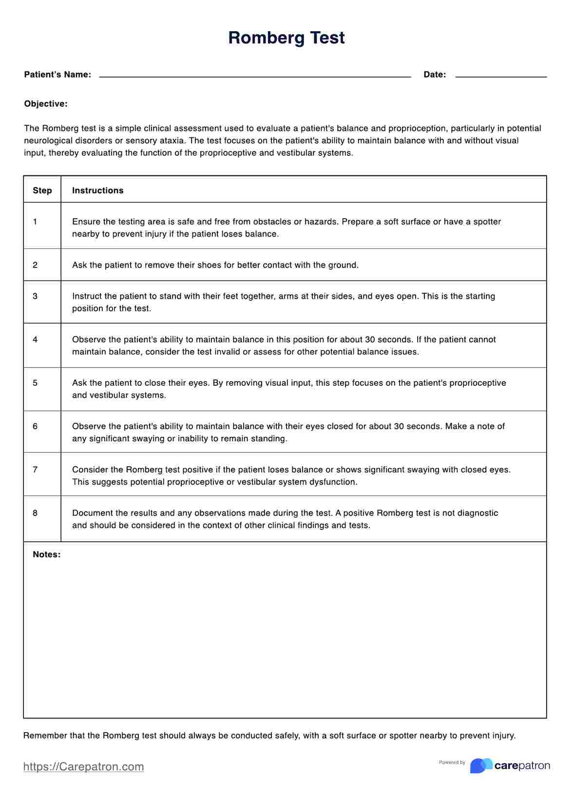 Learn about the Romberg Test, a clinical assessment of balance and proprioception, and download our free PDF template to help streamline the testing process.