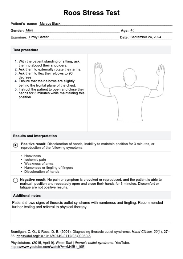 Learn more about the Roos Stress Test, one of the most sensitive provocative tests for thoracic outlet syndrome. Use our template today.