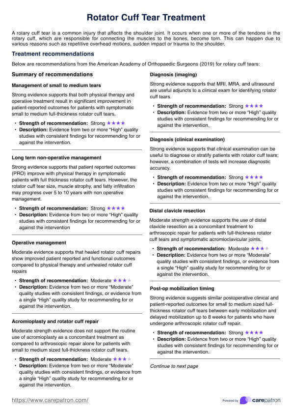 Learn about rotator cuff tear treatment options and get Carepatron's free PDF download with examples to help you understand and manage this common shoulder injury effectively.