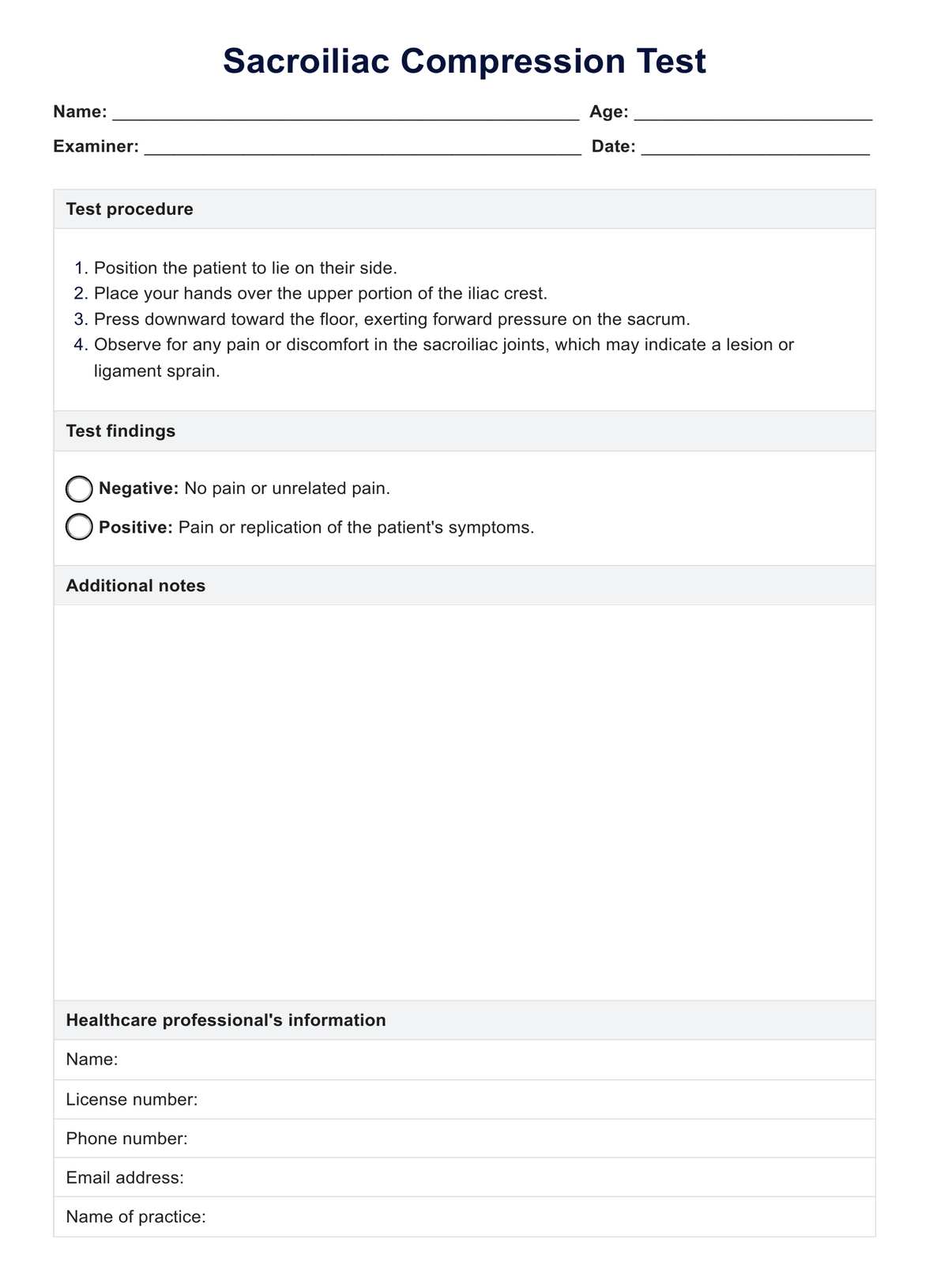 Learn how to perform the Sacroiliac Compression Test with our comprehensive guide and template, ideal for diagnosing sacroiliac joint issues effectively.