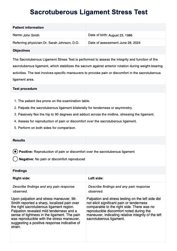 Sacrotuberous Ligament Stress Test Template