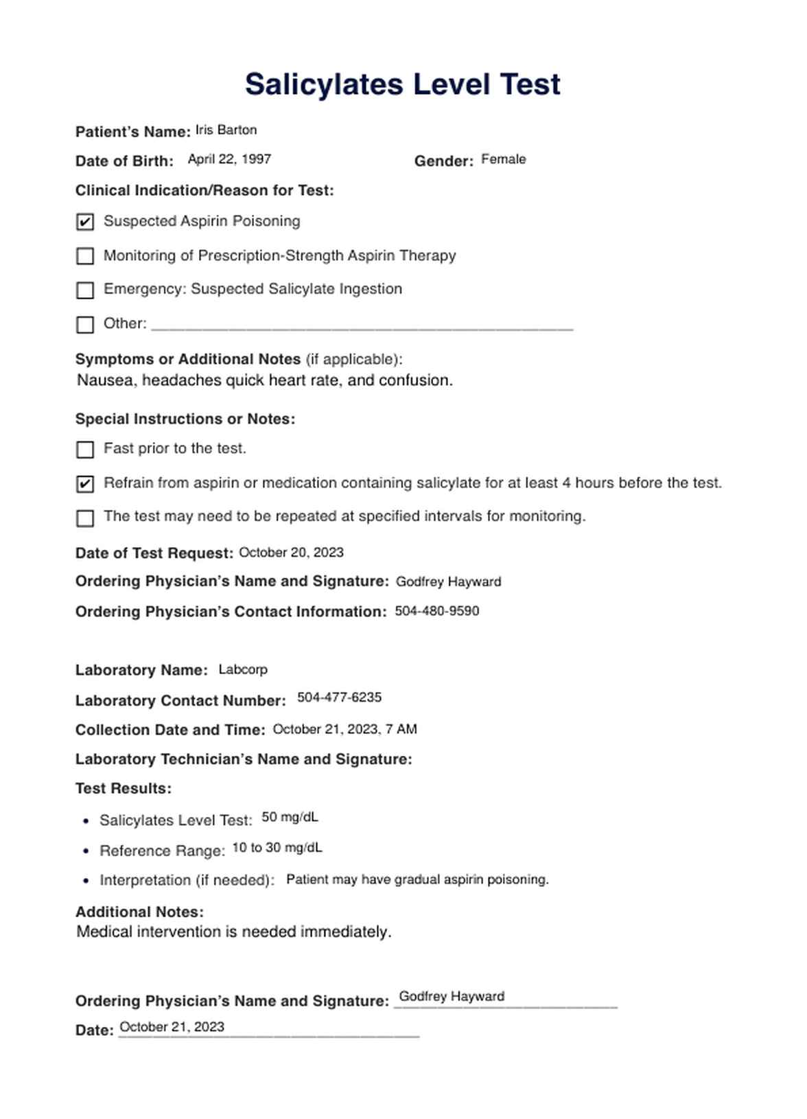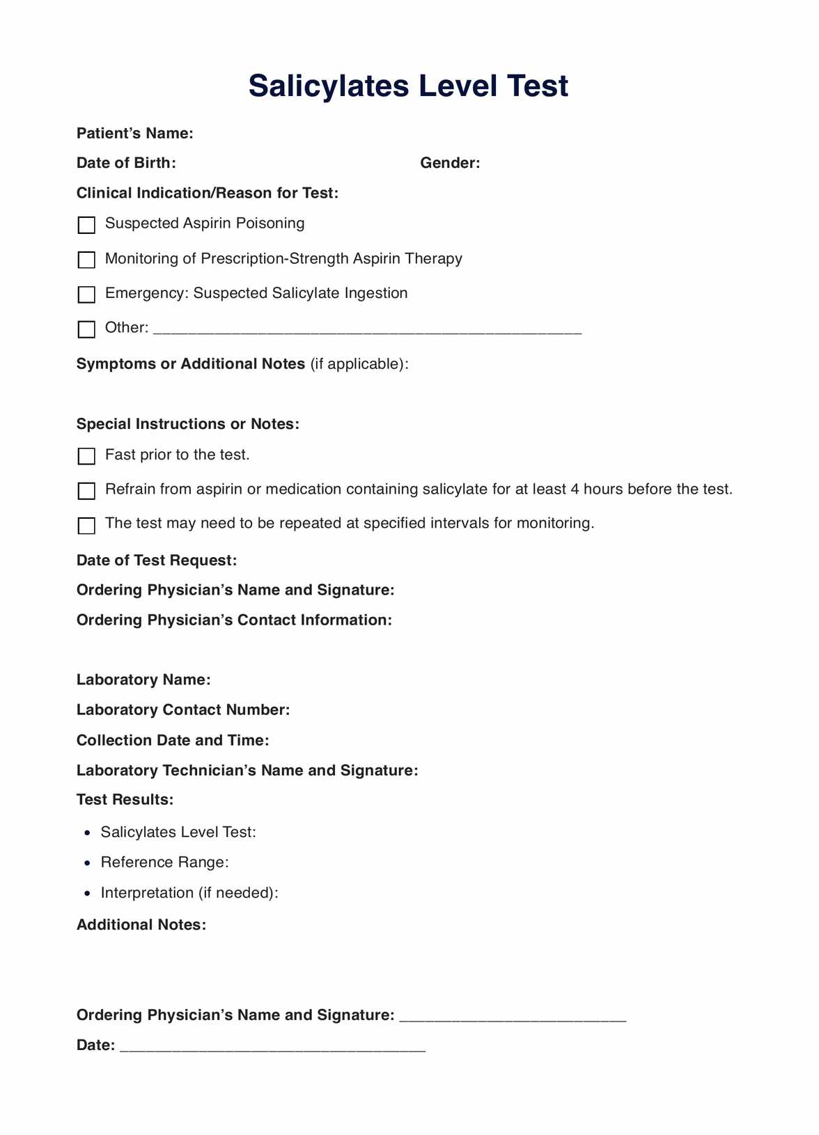 Discover the uses, result interpretation, etc., of the salicylates level test. Check out our short guide to learn more and download a free request form template.