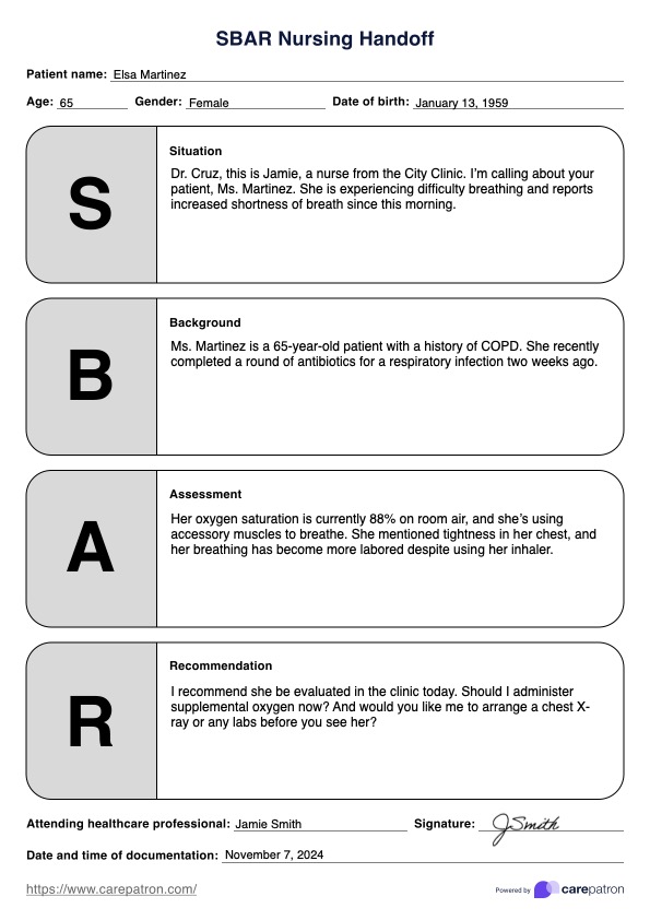 Ensure continuity of care and patient safety by using an SBAR Nursing Handoff Template.
