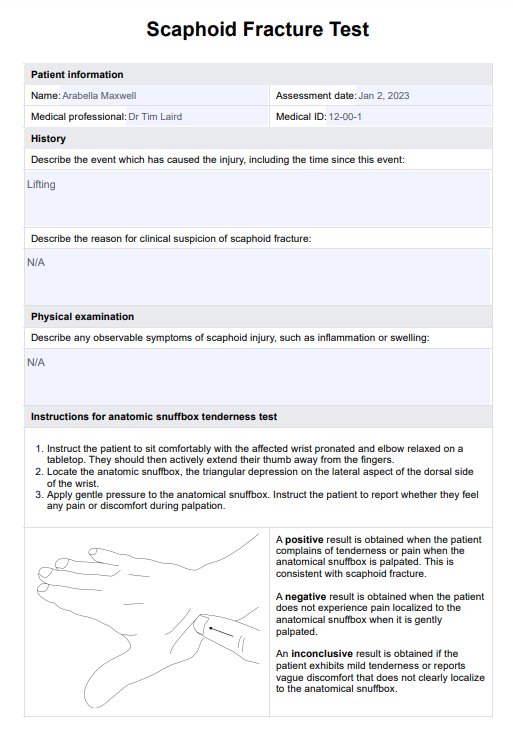 Access our free Scaphoid Fracture Test for thorough and accurate physical examination in cases of suspected scaphoid fracture.