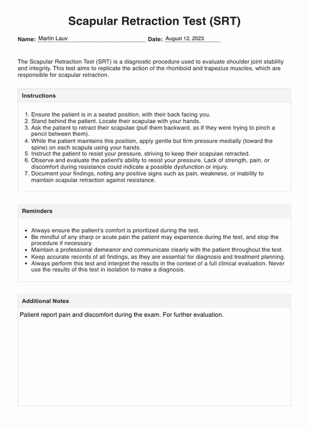 Discover how to perform the Scapular Retraction Test (SRT) with a free PDF guide and example.