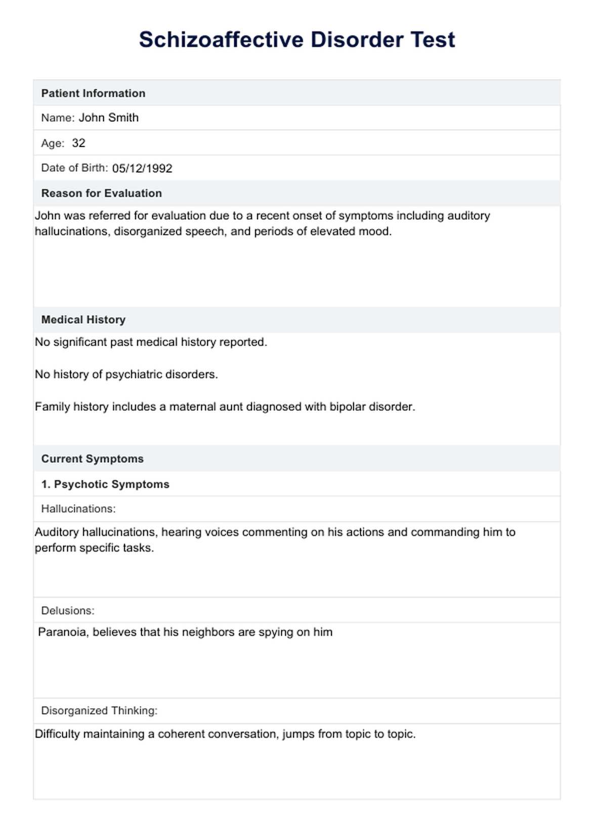 Schizoaffective Disorder Test Template