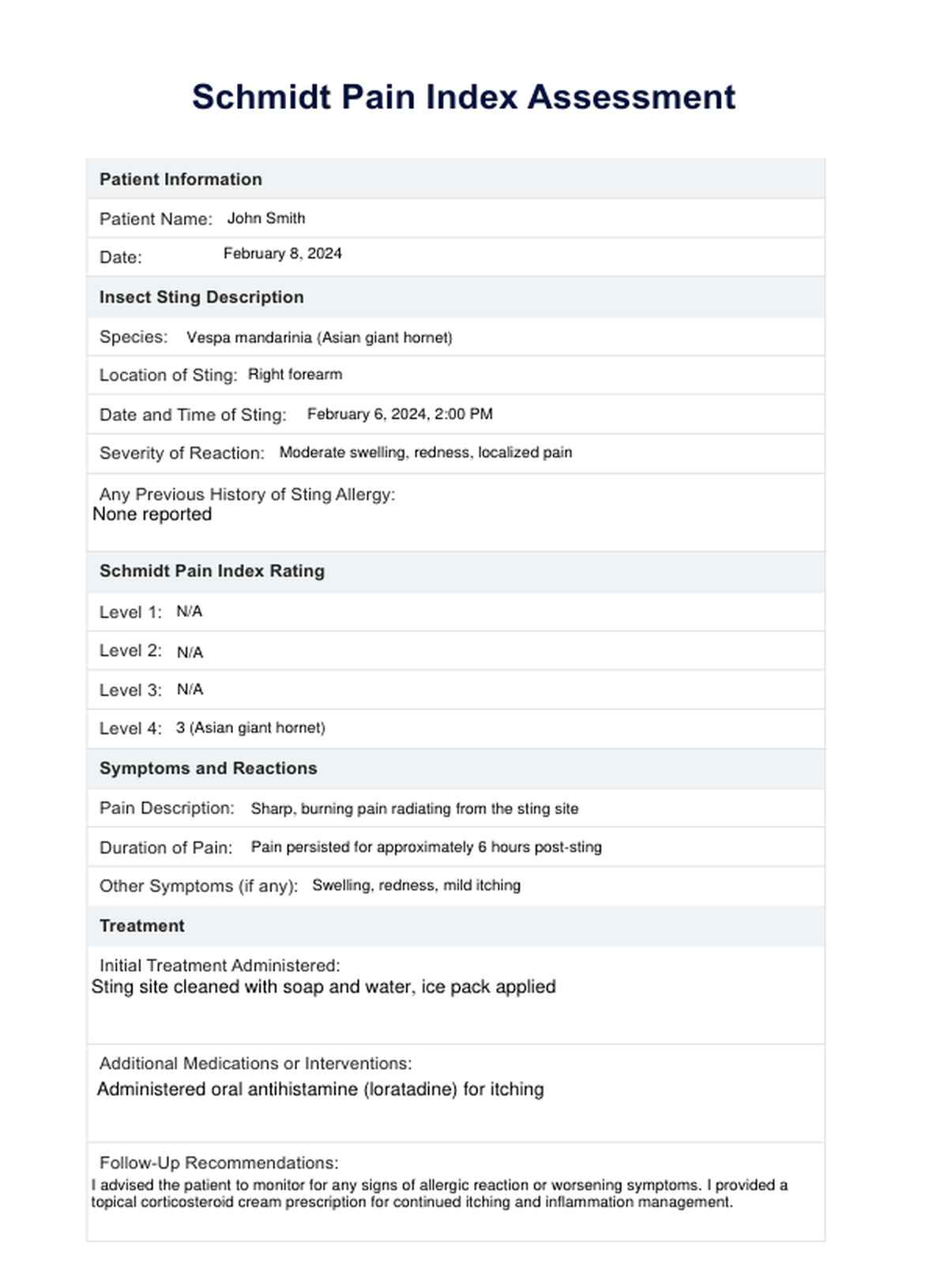 Schmidt Pain Index Template