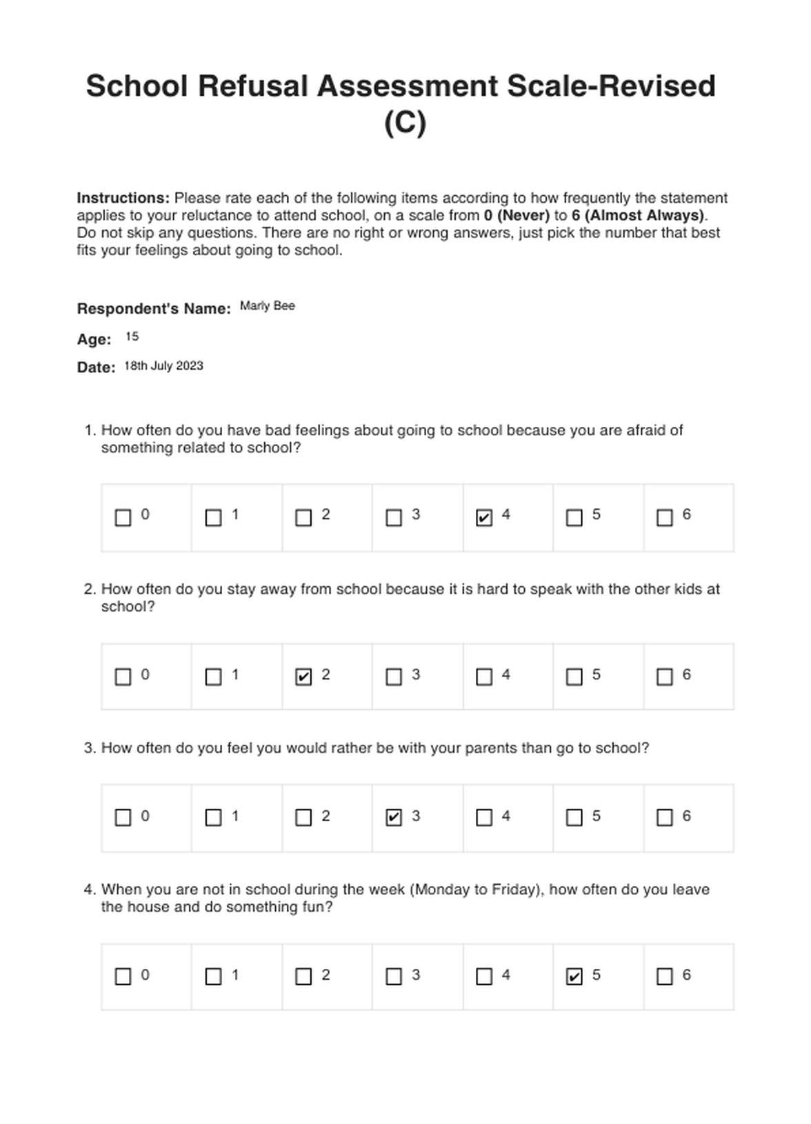 School Refusal Assessment Scale Template