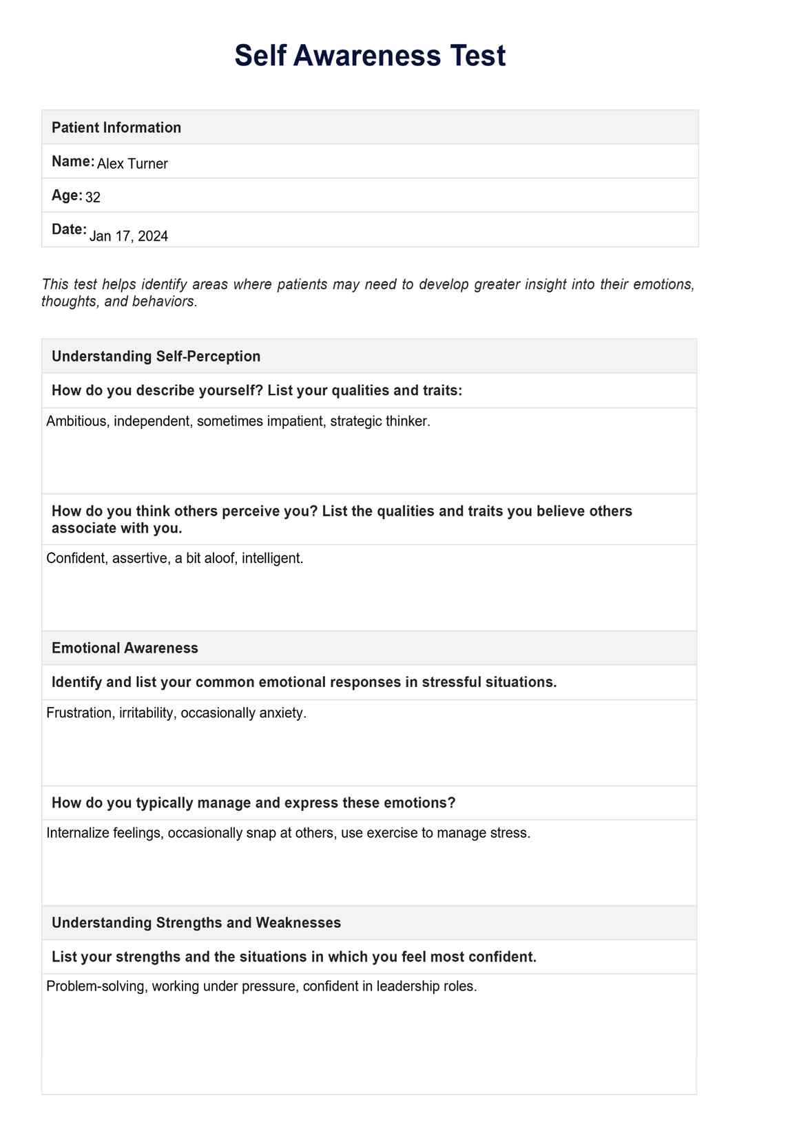 You can test your self-awareness using tools like Carepatron's Self-Awareness Test, which asks introspective questions about your emotions, behaviors, and reactions. Reflecting on these responses can reveal your level of self-understanding.