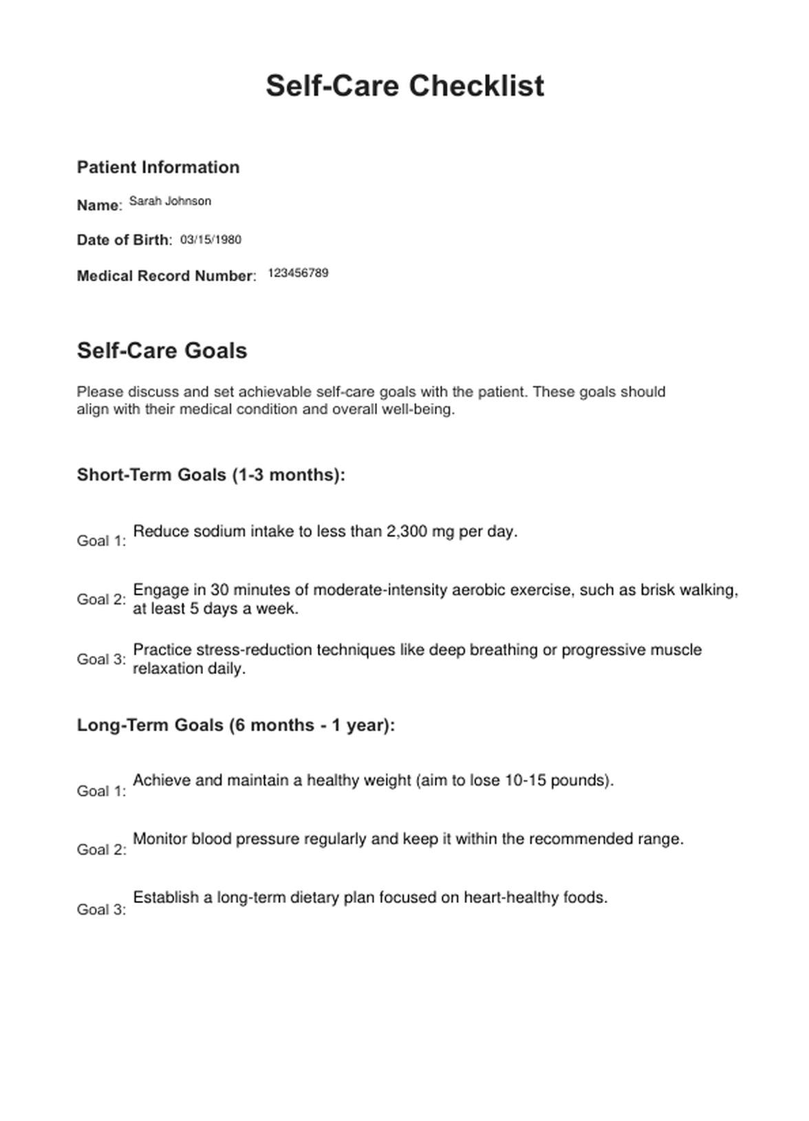 Self Care Checklists Template