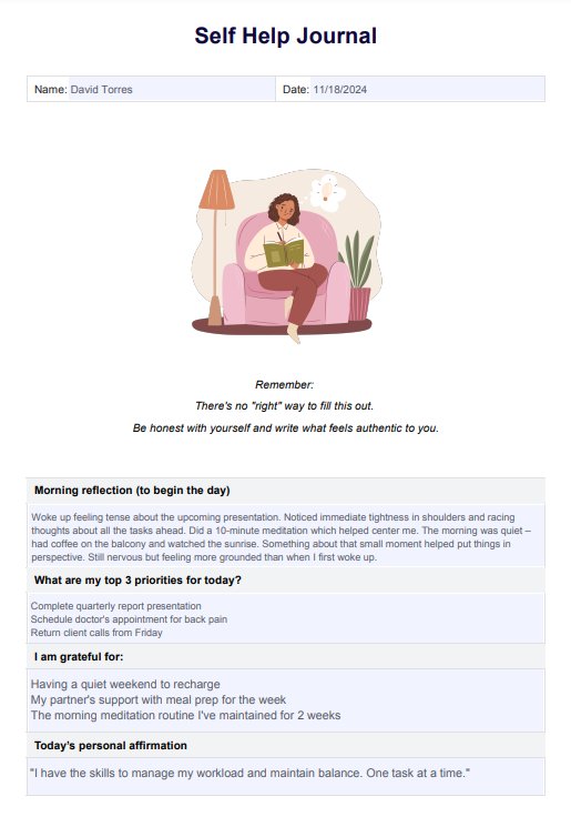 A self help journal is a personal tool designed to facilitate self-reflection, emotional processing, and personal growth. It allows individuals to document their thoughts, feelings, and experiences, helping them identify patterns, set goals, and track progress over time. This practice can enhance self-awareness and provide insights into one's behaviors and emotions.