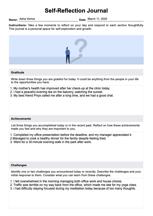 The primary purpose of a Self-Reflection Journal is to assess personal growth and development. Through self-awareness, this journaling practice can be used to identify areas of progress and areas that need improvement. Maintaining this reflective journal is also a great way to assess how far someone has come in achieving their goals and identify the steps needed to reach them.