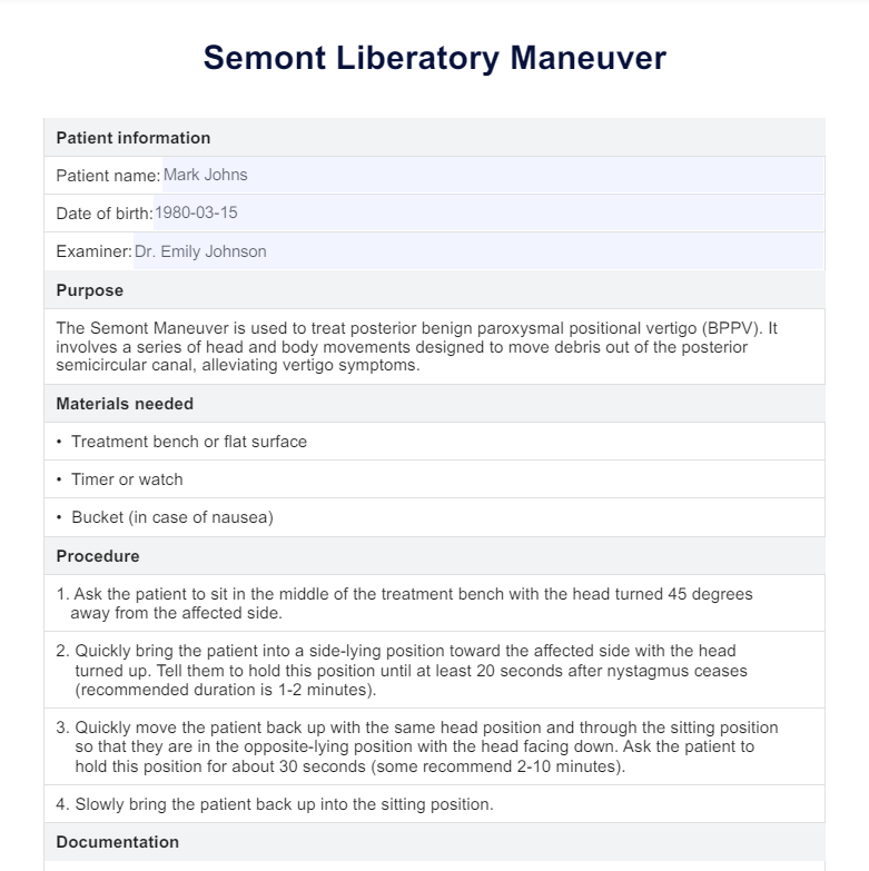 Discover how to treat posterior BPPV with the Semont Liberatory Maneuver. Learn the benefits, step-by-step procedure, and why Carepatron is essential for physical therapists.