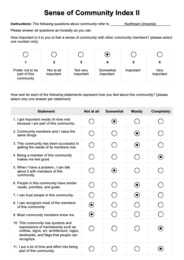 Sense of Community Index Template