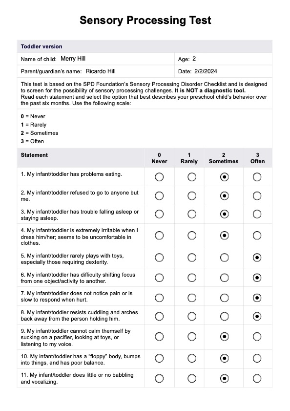 Sensory processing disorder (SPD) is typically diagnosed by an occupational therapist who conducts a thorough evaluation of the individual’s sensory responses and behavior. This may include administering a sensory processing disorder test, which helps identify any difficulties in processing sensory input. The occupational therapist will also review the individual's medical history and developmental background to rule out other conditions. While SPD is not formally recognized as a medical diagnosis in all diagnostic systems, when sensory processing difficulties significantly impact daily life, it can lead to a sensory processing disorder diagnosis. In children, SPD is often assessed alongside conditions like autism spectrum disorder, as the two can co-occur.
