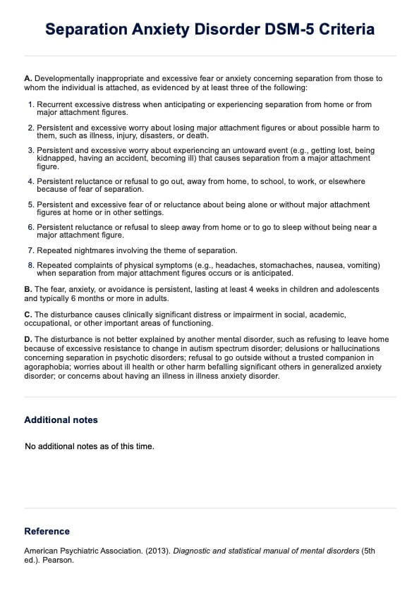 Separation Anxiety Disorder DSM-5 Criteria Template